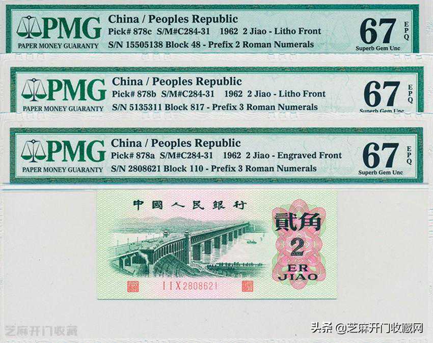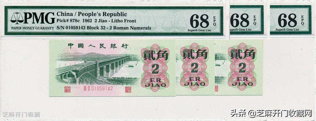 出现在第3版的人民币当中一样就能够看出和其他纸币不一样的设计,显出一定的违和感,似乎有一点不协调的感觉。据悉,现在1962年2角人民币的价格基本上是这样的:全新的平版二罗马大概每张报价是30元,全新平版三罗马大概每张报价在35元左右,全新3罗马凸版大概每张260元。不过这个价格经常会出现变动,所以只能作为参考。
