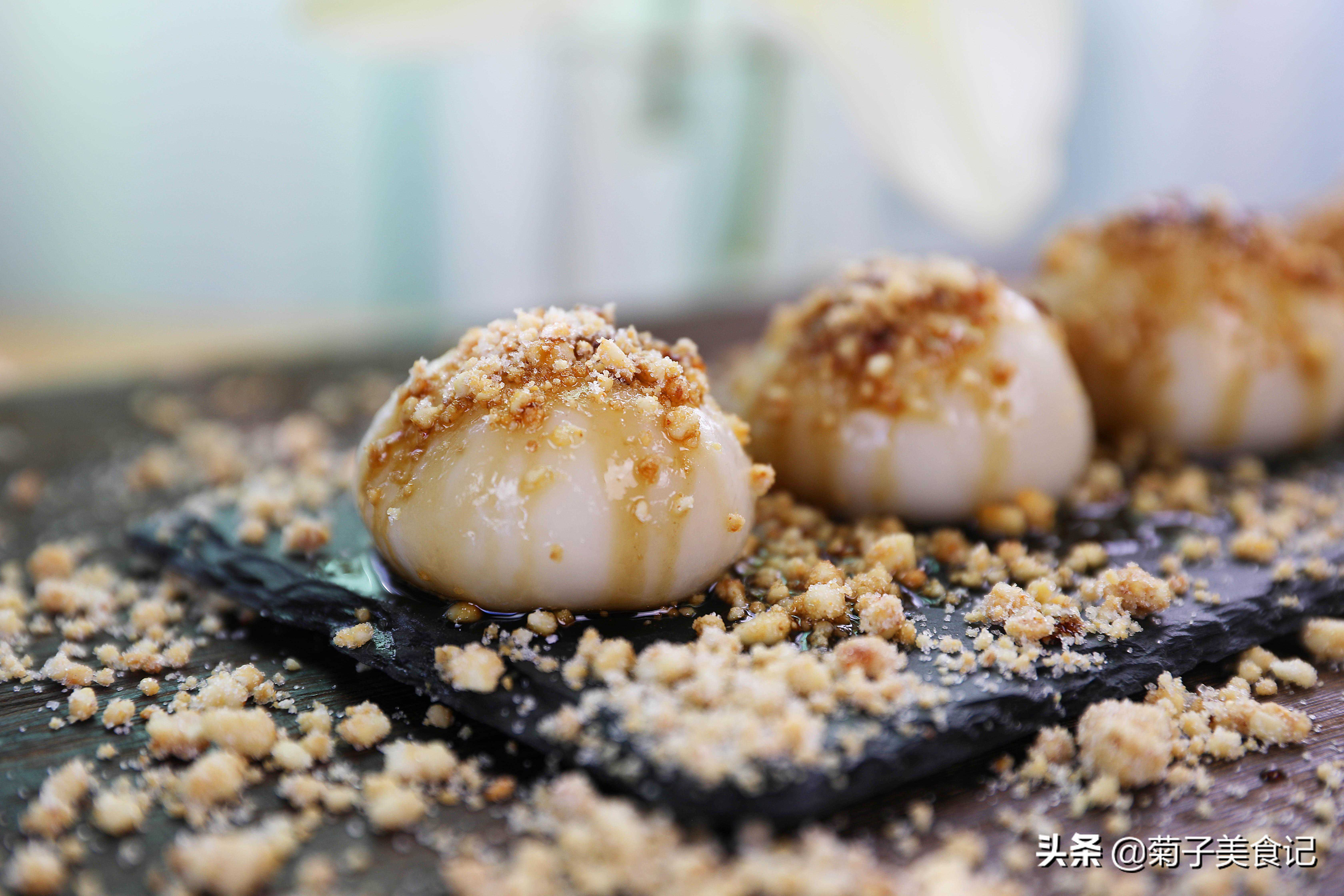第三步:锅里加入一小碗水烧开,倒入红糖把红糖煮散,把糯米团子放进红糖水里煮至上色,起锅撒上花生碎,再把红糖熬成糖浆淋在糯米团子上即可开吃啦。