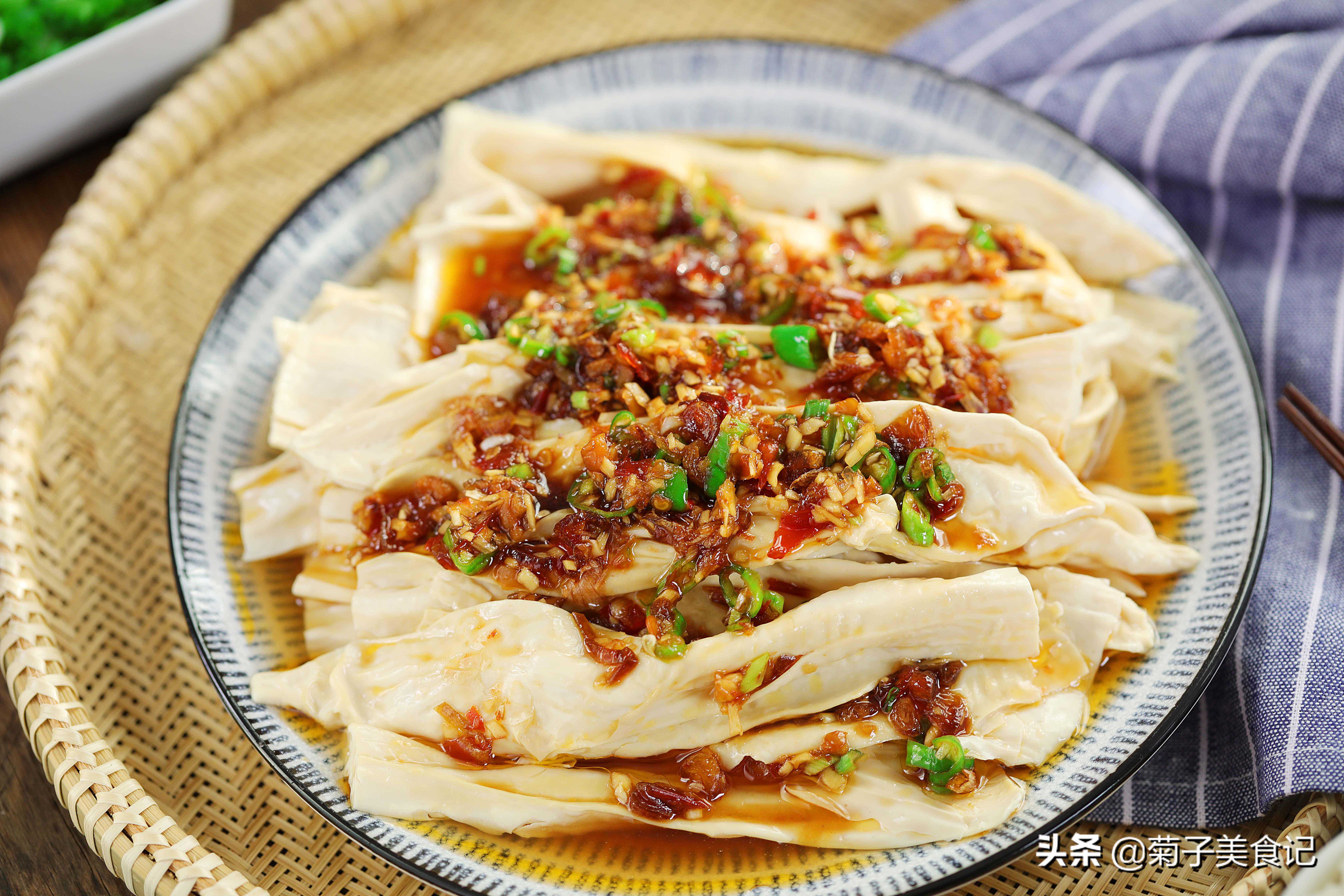 第三步:支竹下锅煮2分钟捞起沥掉多余的水分,最后淋上调好的酱汁,上桌吃的时候拌匀即可,吃起来口感香脆,一股淡淡的豆香味,不要错过哟!