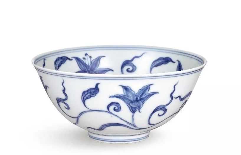 宫碗是明代成化一朝的名器,存世数量极少,大都藏于顶尖博物馆,私人市场相当少见。成化青花以淡雅著称,该宫碗发色蓝中泛灰青,衬以洁白温润的胎釉,幽隽脱俗。所绘萱草又称忘忧草,寓意吉祥,为宋代陶瓷常见题材。