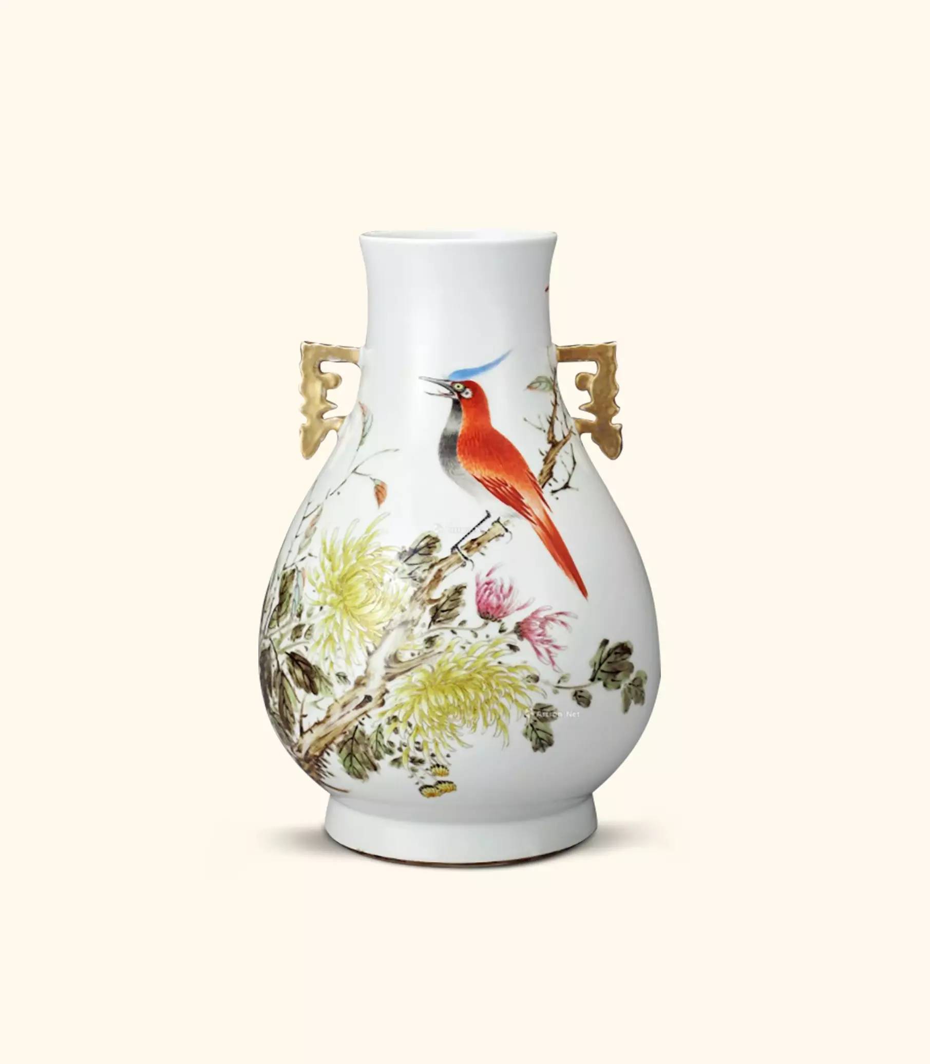 民国|毕伯涛款|粉彩花鸟纹双耳尊