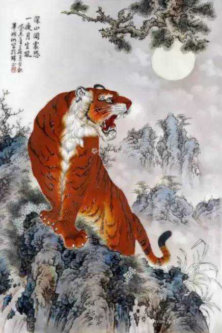 (左)毕渊明|粉彩山水(右)毕渊明《虎啸图》|设色纸本