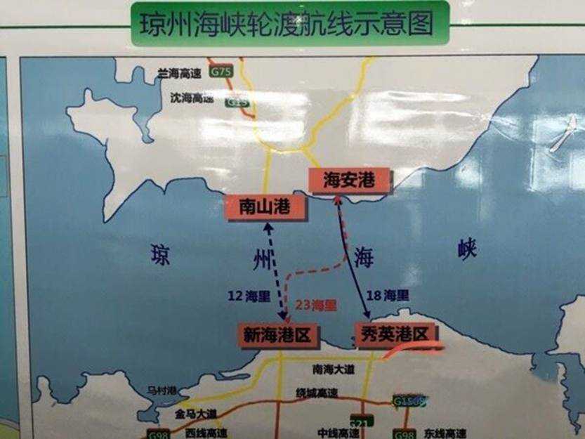 2、在湛江市的海安港或海安新港轮渡(海安港跟海安新港的区别在于,海安港是旧码头,海安新港是2009年新建的码头。两个码头相距约2.6公里)。
