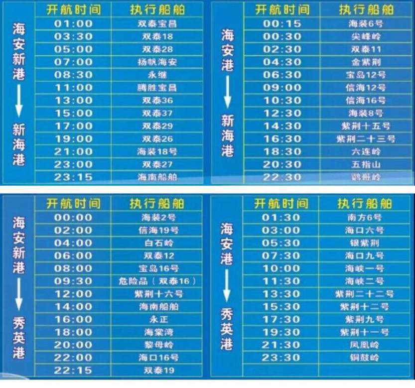 三、从海安到海口轮渡时刻表