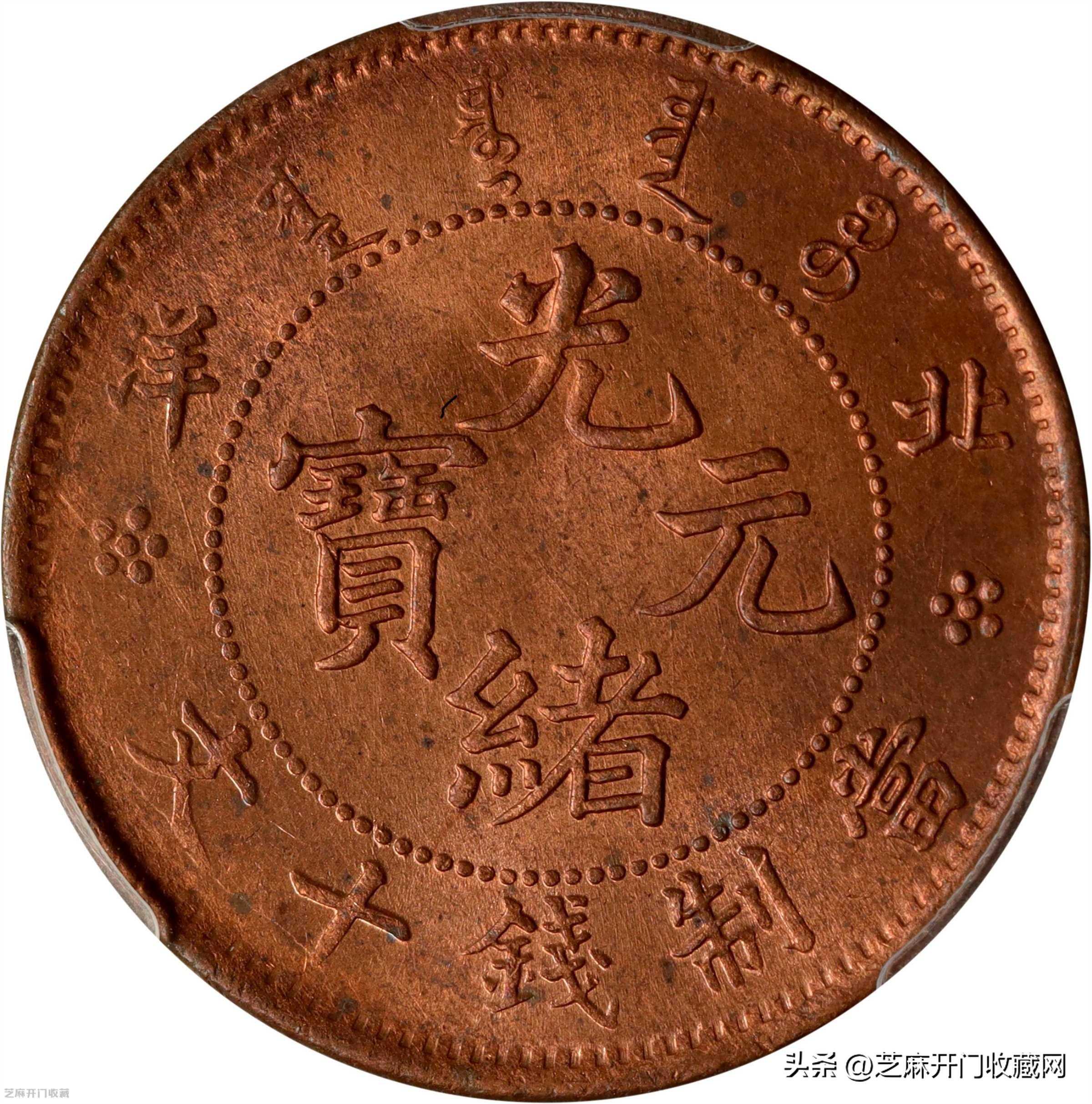 但是我们也说过在光绪元宝北洋十文中,也有一些版本的钱币是有较高收藏价值的。那么接下来我们就来看一看,其中最贵的是哪一种?首先我们可以从以下这几个方面去辨别。第一个是看边花,如果边花是阴蕊的话,那么他的收藏价值并不高,因为在北洋十文当中阴蕊类的钱币铸造数量是比较巨大的,也是最常见的一种,在北洋十文系列当中,是最基础款的。