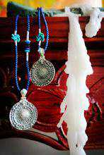 藏族人的腰间都挂着这种九宫牌护身符。传说中,西藏密宗开山祖师─莲花生大师,为慈悲一切众生于世间因受时空、方位不吉祥所生障难,特聚集梵、藏、汉三地佛教文化,内含中国的“八卦”及“十二生肖”结合设计出“九宫八卦”护牌。为渡众生破除无明,各种凶煞障难之镇宅安居僻邪妙宝。藏人将此咒牌悬挂门上或屋内,也可佩带在身上,心无挂碍,当成护身符或避邪物。