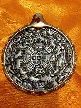 间因受时空、方位不吉祥所生障难,特聚集梵、藏、汉三地佛教文化,内含中国的”八卦”及”十二生肖”结合设计出”九宫八卦”护牌。为渡众生破除无明,各种凶煞障难之镇宅安居僻邪妙宝。藏人将此咒牌悬挂门上或屋内,也可佩带在身上,心无挂碍,当成护身符或避邪物。