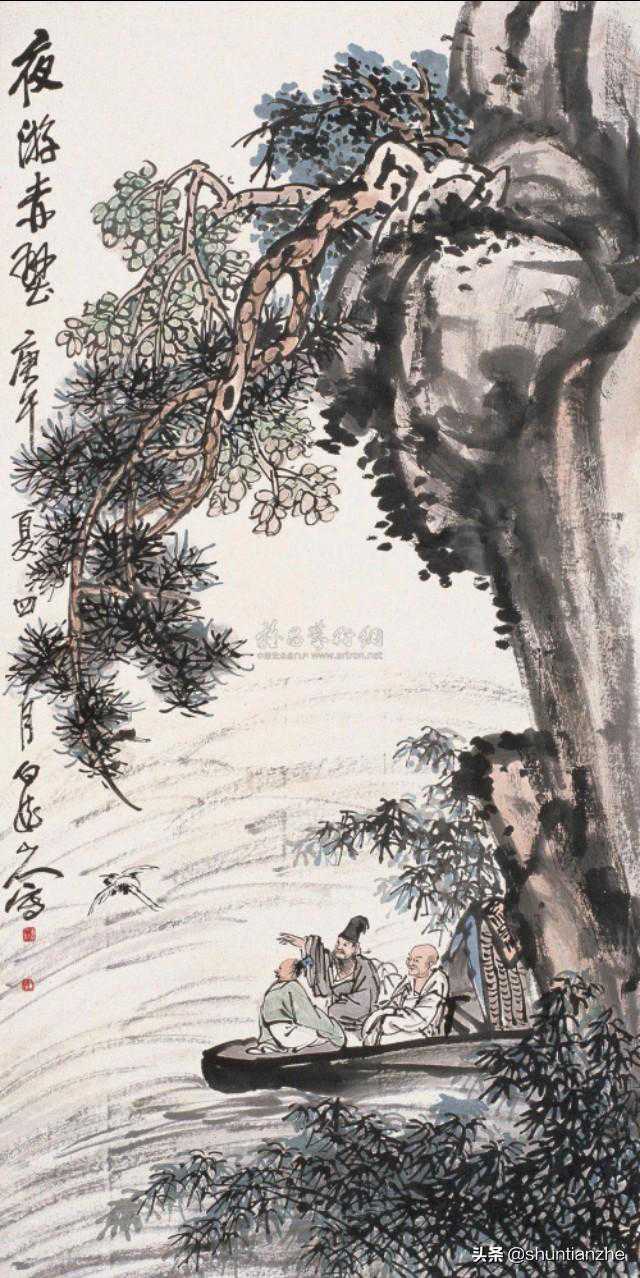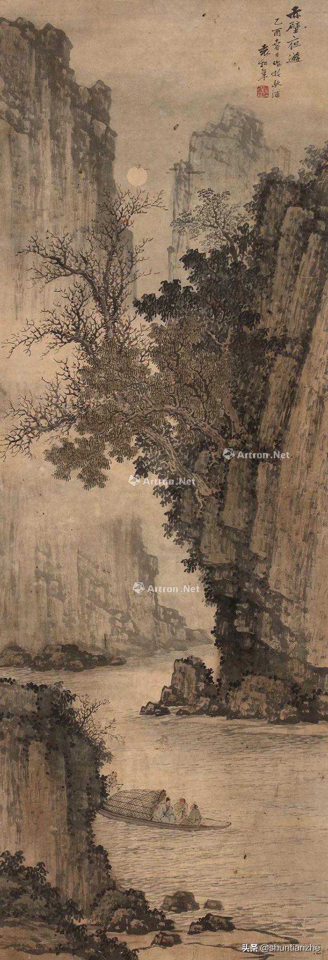 袁松年庚辰(1940年)作赤壁夜游图立轴