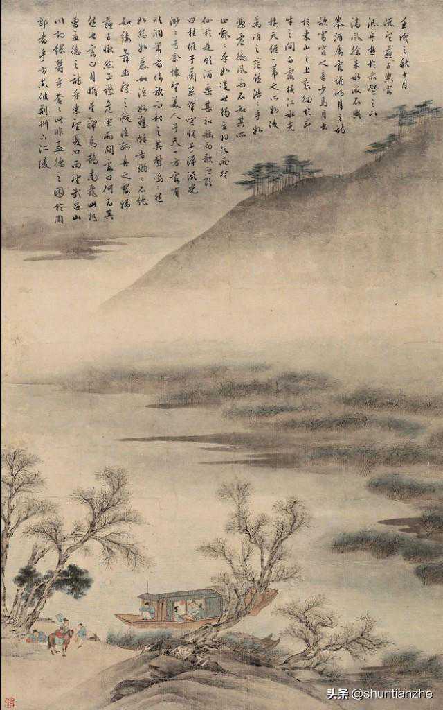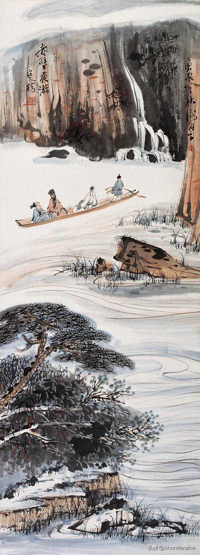 ?袁松年癸未(1943年)作赤壁夜游图立轴