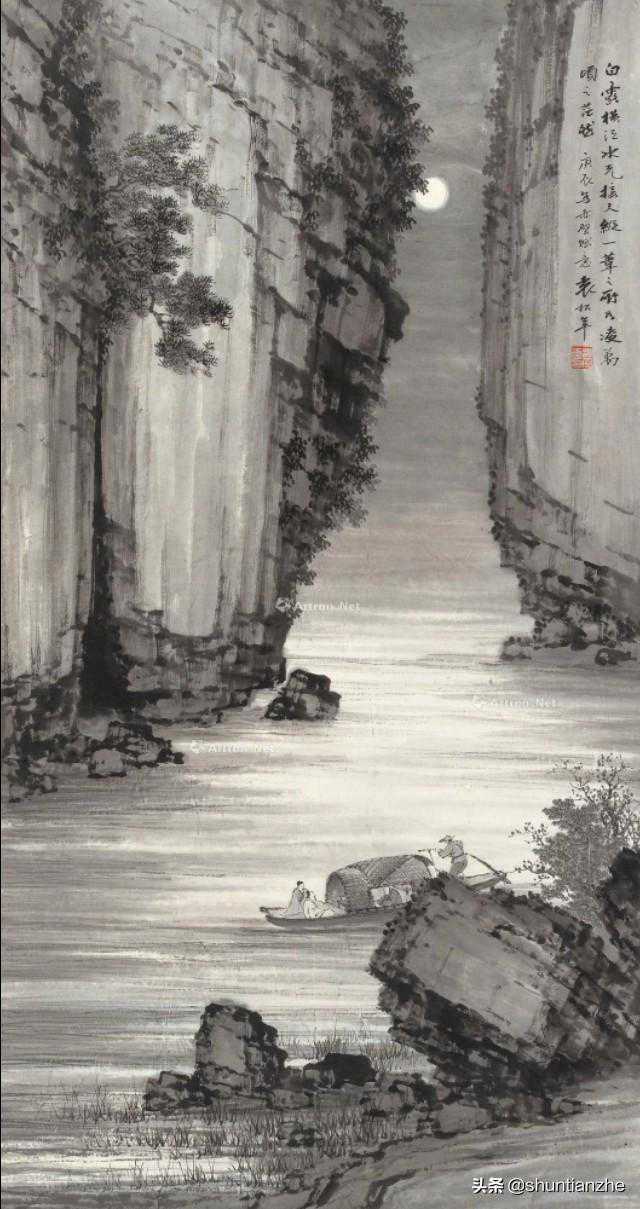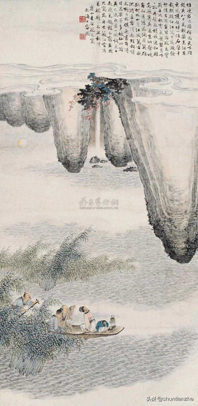 陈少梅己卯(1939)年作赤壁夜游图立轴