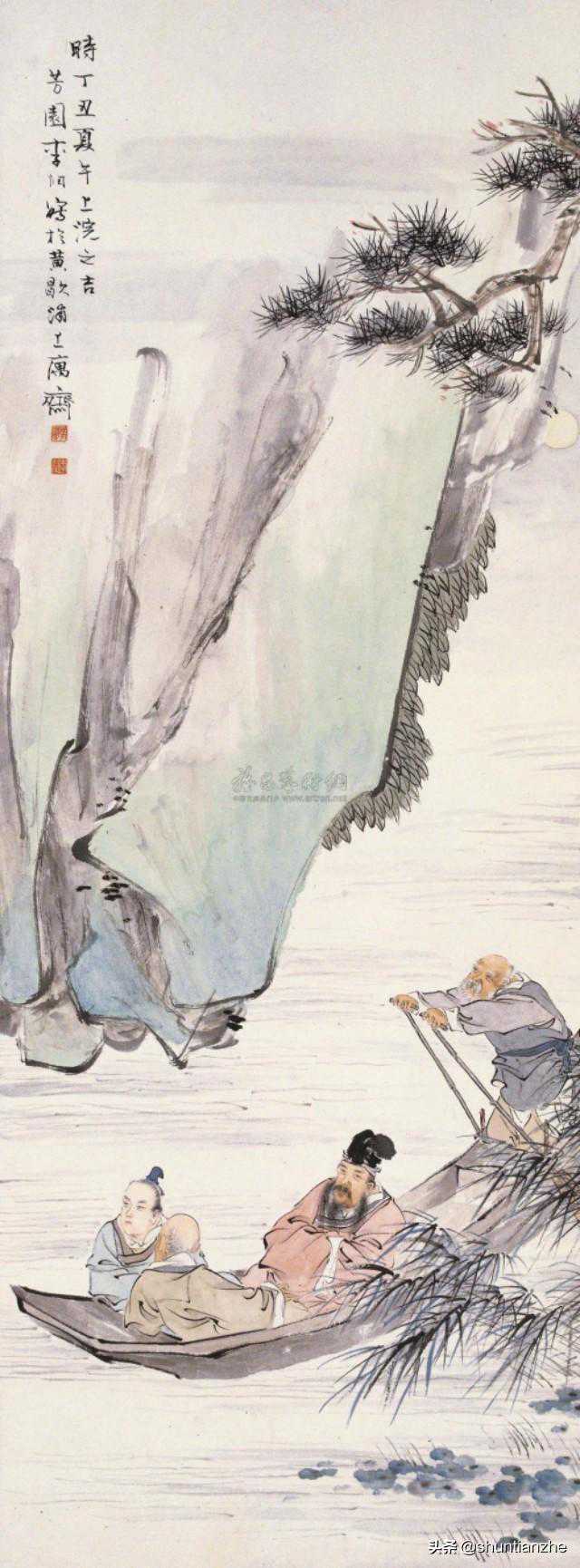 李芳园丁丑(1937年)作赤壁夜游图立轴