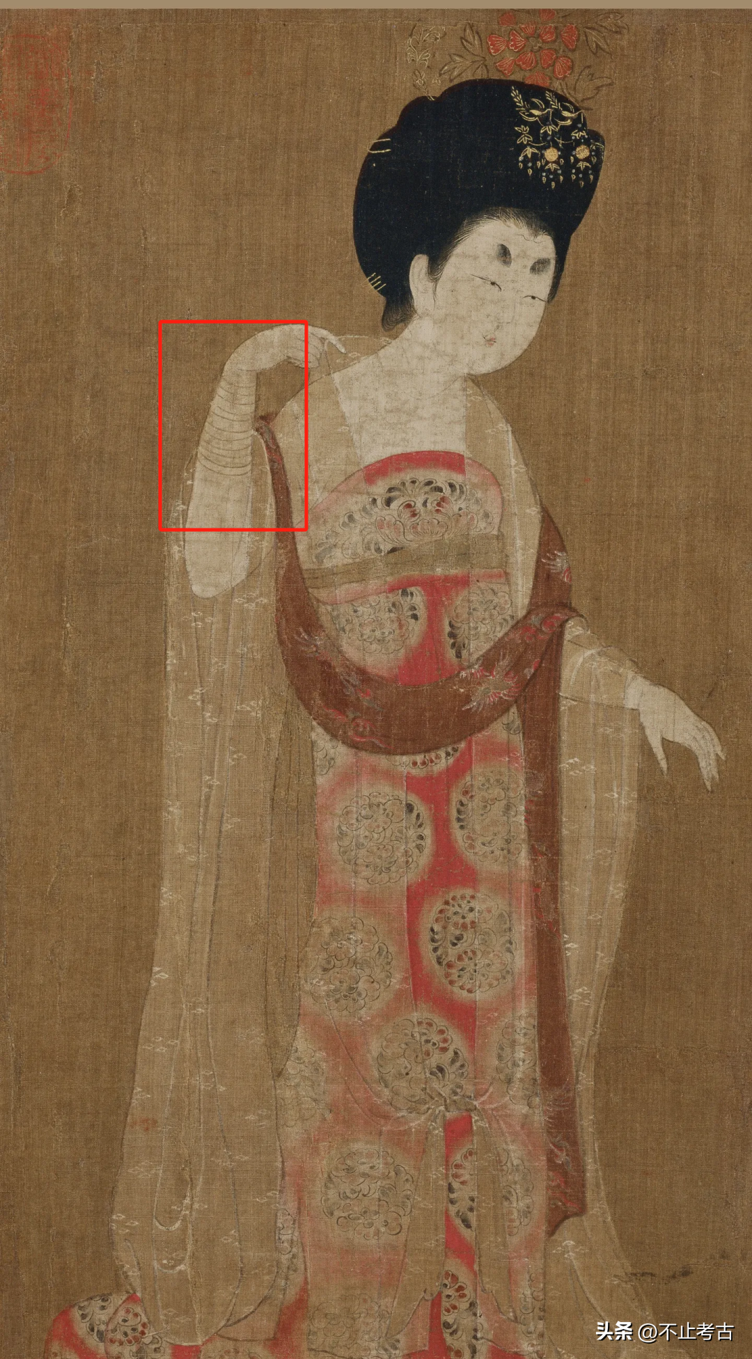 周昉《簪花仕女图》局部,手臂上的臂钏,辽宁省博物馆藏