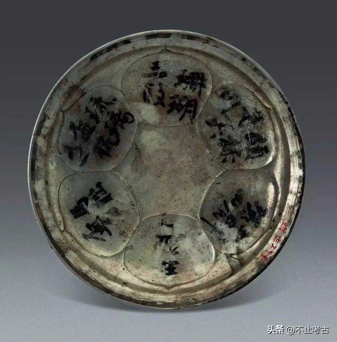 莲瓣纹提梁银罐的罐盖上写着24个墨字,均匀书写在6个莲花瓣之内。