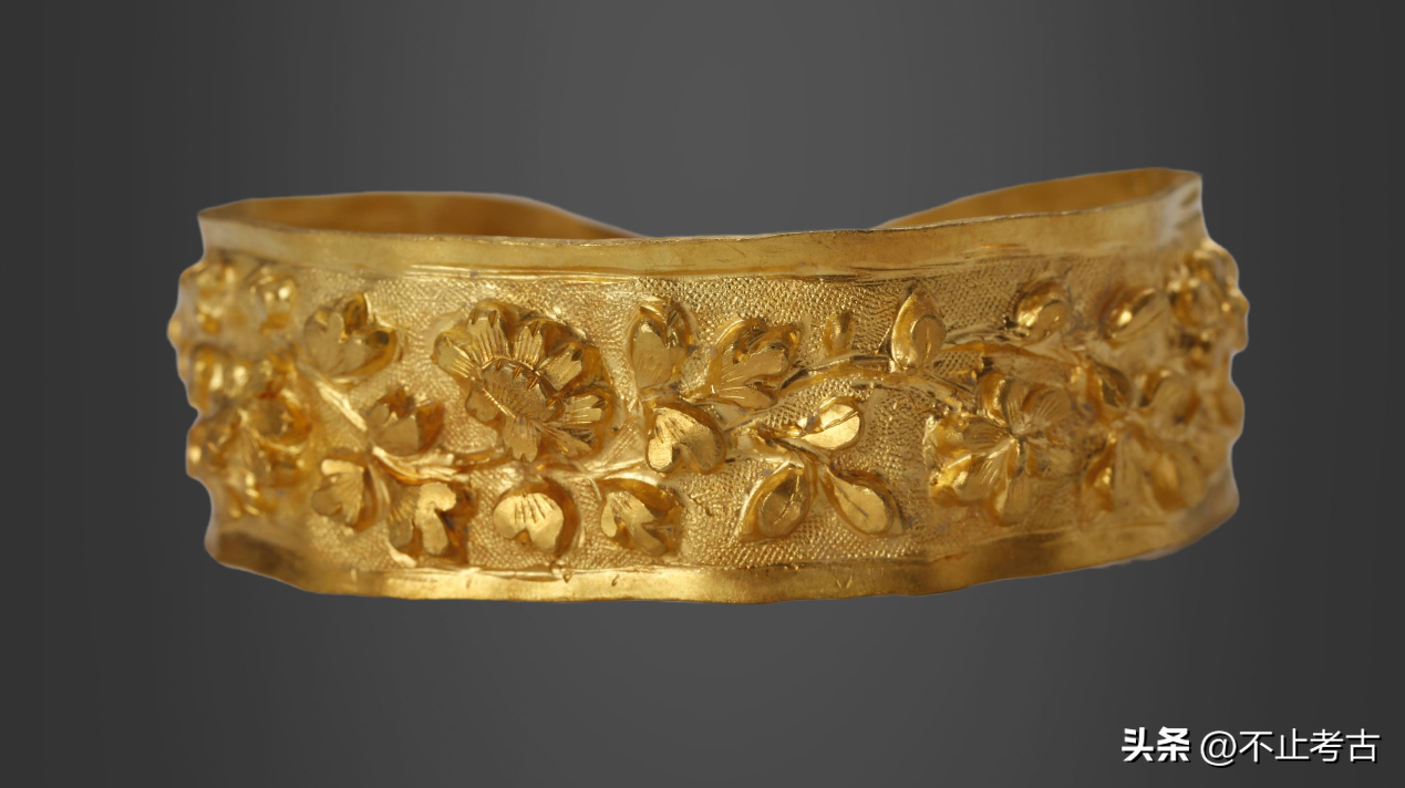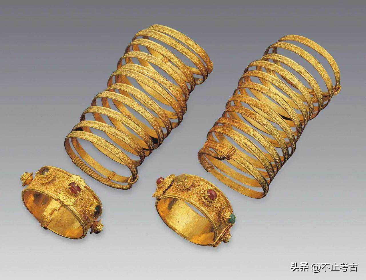 金钑花钏和金镶宝石镯,出土自梁庄王妃墓