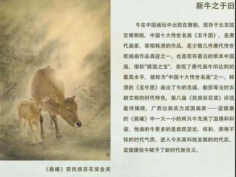 蓝健康笔下的鱼尤其注重悠闲自得、自由自在的情感表达。他的作品经常与诗意融合一起,以此达到一种美妙高深的艺术境界,拥有一种独一无二的魅力和内涵,观赏他的国画作品就像是在进行一场文化艺术的洗礼与熏陶,极有收藏价值。不忘初心民族艺术的探索者除了擅长画鱼之外,其原生态艺术绘画佳作-一牛,更是其创作的代表。画家蓝健康,一鱼一牛,画坛双绝。他以牛的题材国画获第八届全国民族百花奖金奖,创作水平受到肯定。