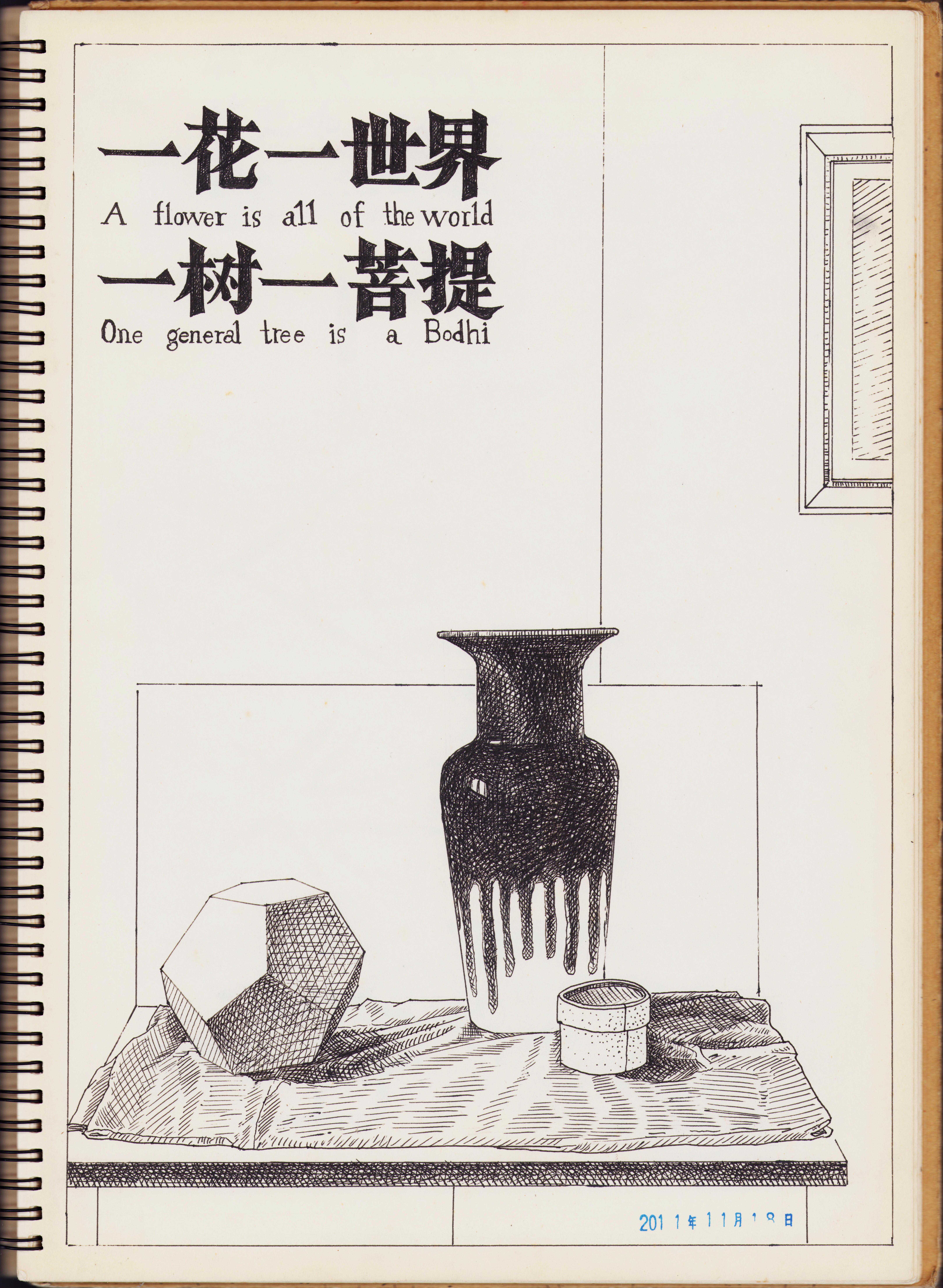 这里呈现的16幅钢笔画,是我画在一本素描本上的练习中挑选出来的,包括透视图、石膏几何体、写生花卉、动植物、工业产品、风景等内容,是课堂给学生作示范用的,大部分都在2013年前所画,教学年级从2010级到2013级。现在,纸张已发黄了,但是还能想起与同学们在课堂上一起度过的愉快时光。发在这里,也算是点滴的回顾与总结,请大家批评指正!