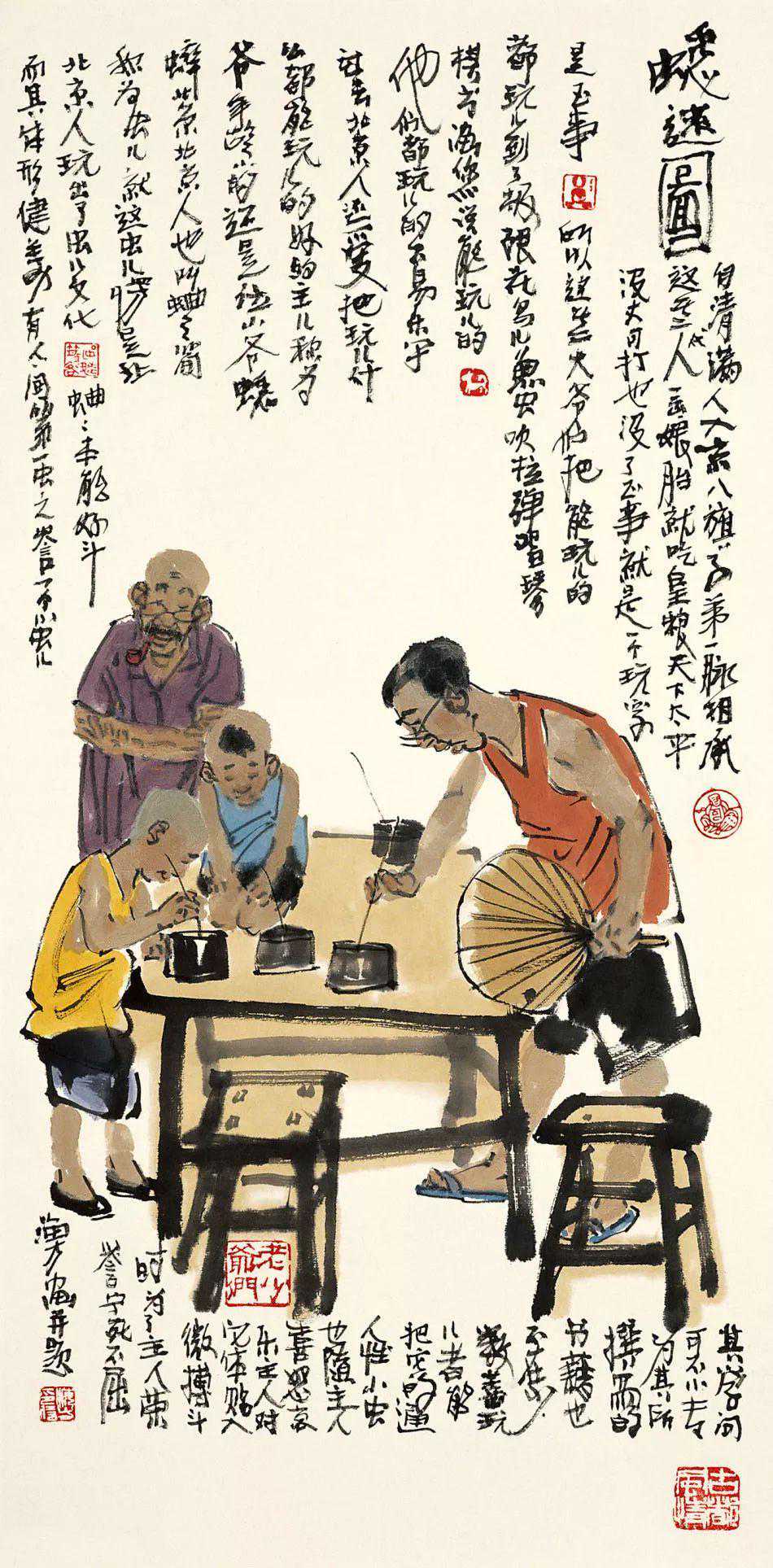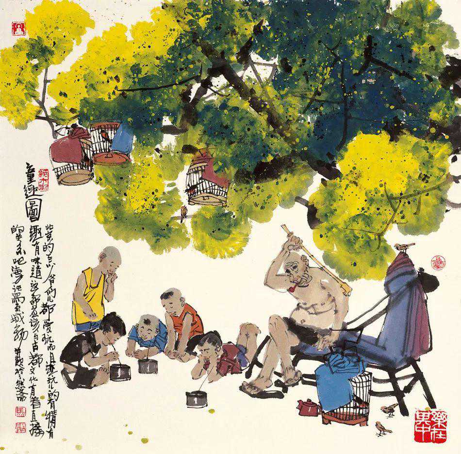 北京人有句常说的话,心静自然凉,你细瞅瞅这画面上,何凉之有?其实画的是一种心情,心里静,身自凉。