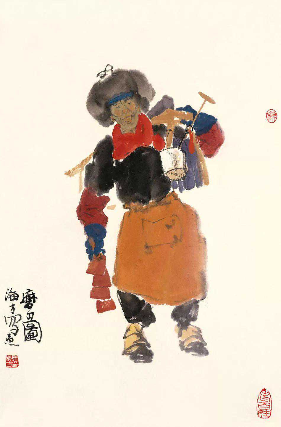 他秉承前辈大师叶浅予和黄胄的路数,走到哪儿画到哪儿。速写本不离身。前辈大师有言:“人物画若无速写素描功底,难以成大器。”当今中国画家像他这样拿速写素描当回事的排不出几位来。