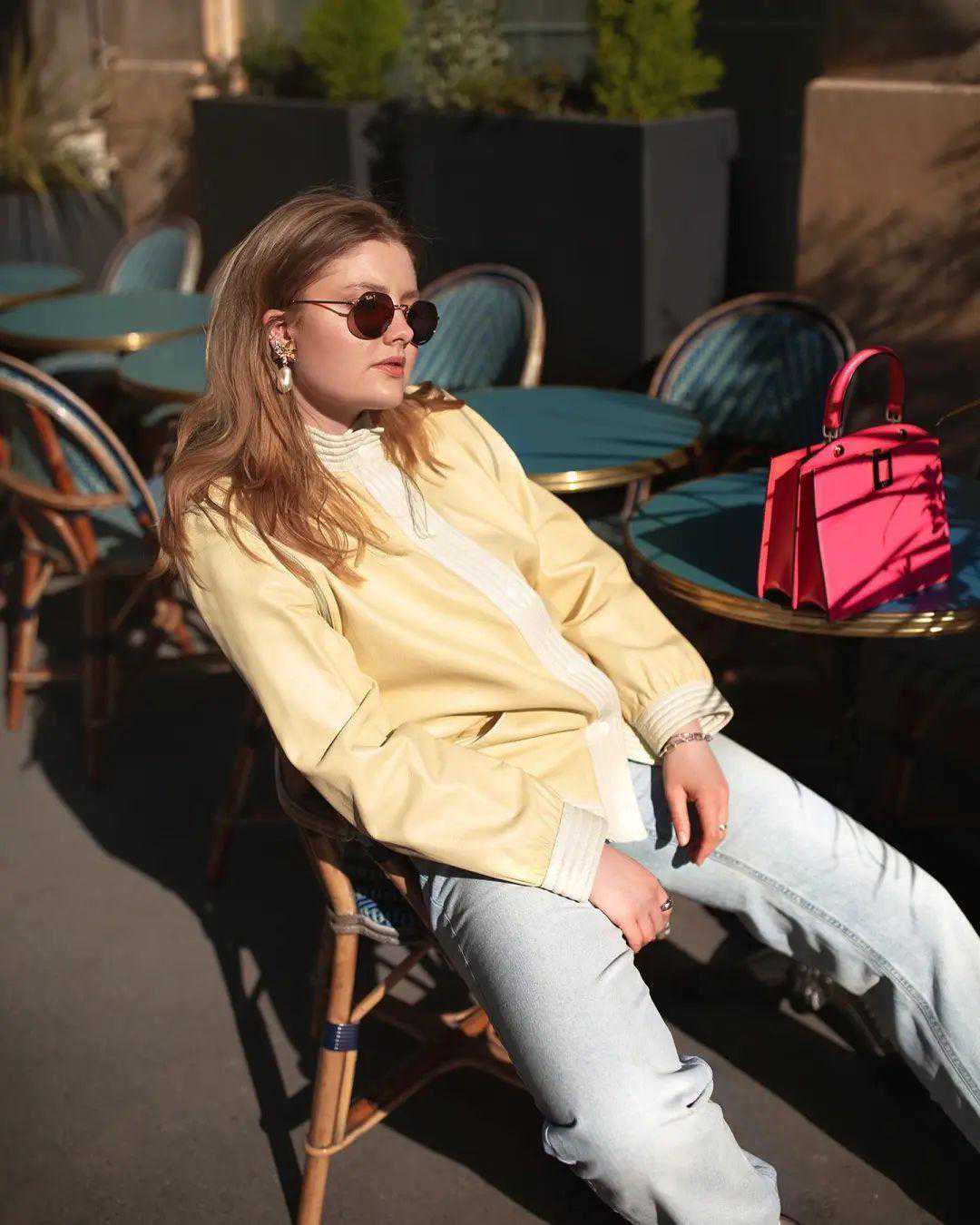 HannahTeitink来自德国,生活在巴黎,她的穿衣风格偏法式,带点复古和小性感,喜欢各种彩色单品,非常明媚。▼