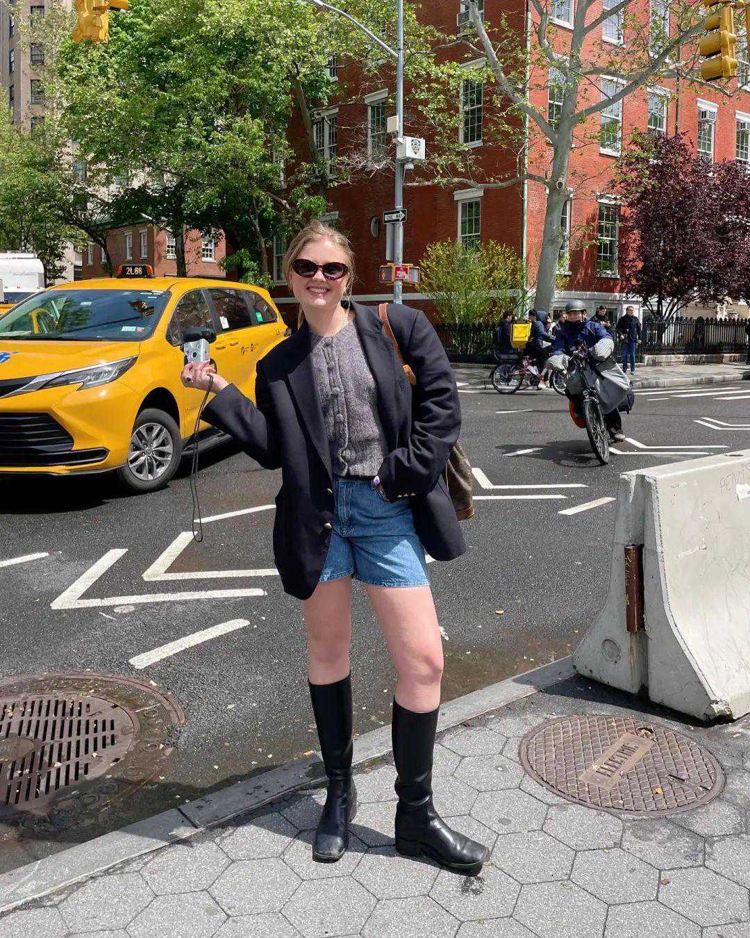 很多腿不够细的小伙伴都不敢穿长靴,Hannah却很爱穿。