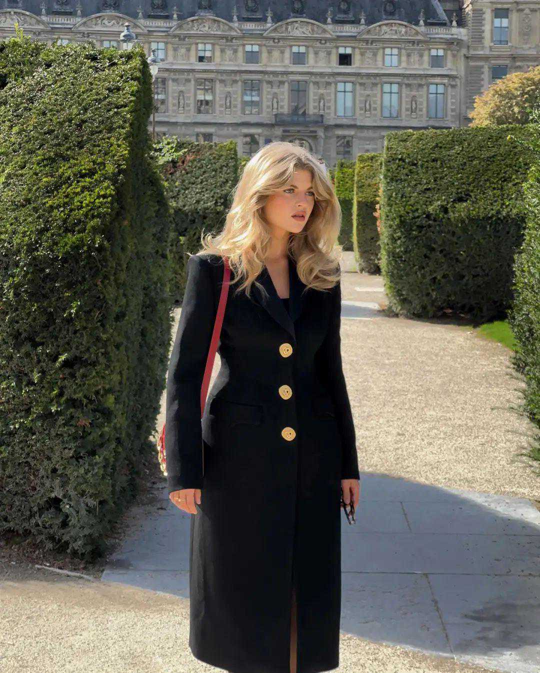 在外套里面,长外套比短外套更能凸显她的气质,兼具飒爽和女人味。