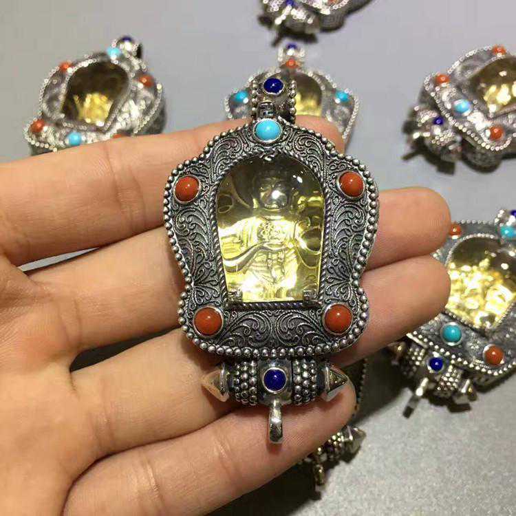 这种嘎乌盒相当于一个随身的佛龛,里面可以放置观音渡母,佛,或是绿松石雕刻的十二生肖的八大守护佛,非常的小巧精致。