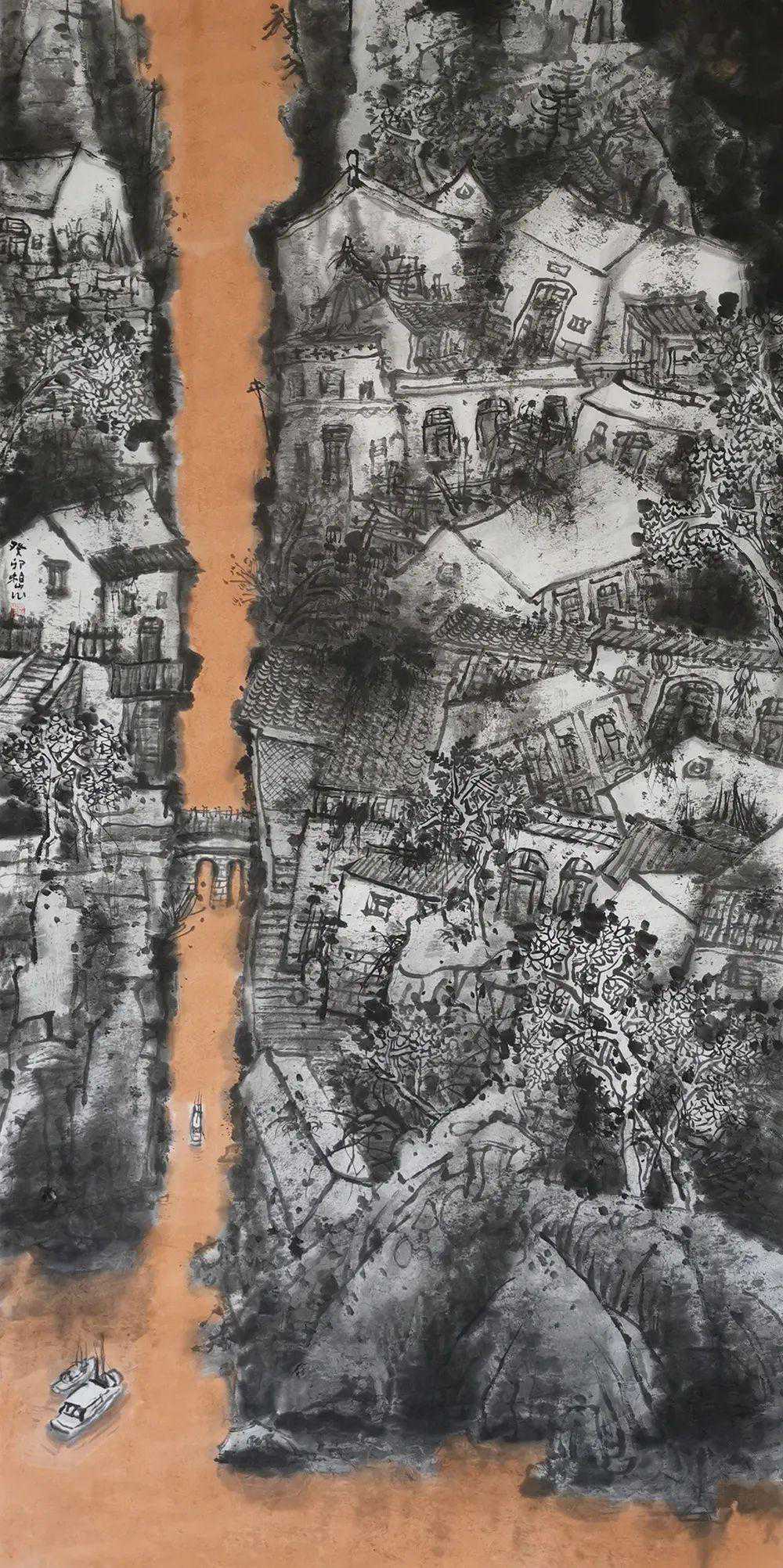 2022年,中国画山水作品《江村新象》入选中国美术家协会主办的2022“江山如此多娇”中国山水画作品展览。