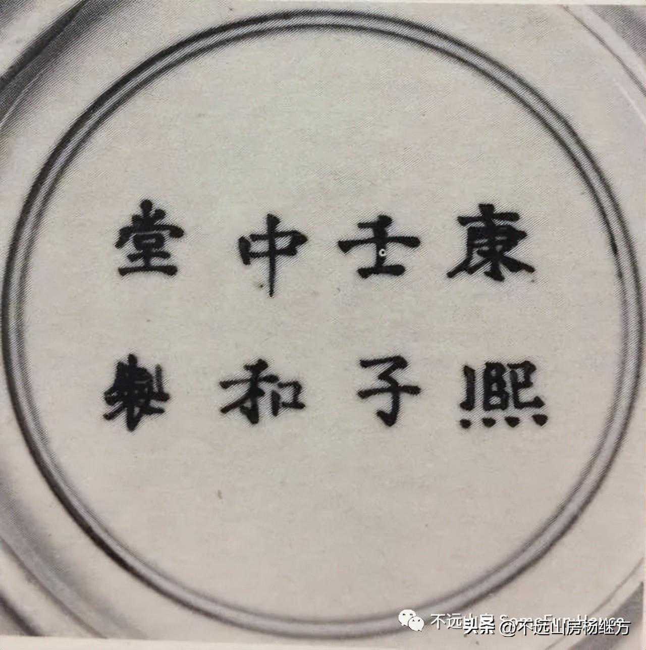 康熙青花瓷器的款识,丰富多样。朝代款主要是青花双圈楷书"大清康熙年制"六字款。字体端庄工整,雄健有力,字与字之间距离比较大。康熙早期无款居多,康熙二十一年之后均有落款。仿明代款有:"大明永乐年制"、"大明宣德年制"、"大明成化年制"、"大明嘉靖年制"、"大明隆庆年制"、"大明万历年制",多是楷书。