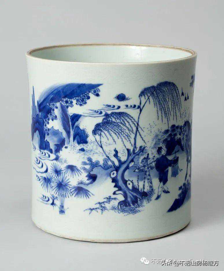 康奈尔大学博物馆藏清康熙青花山水纹笔筒