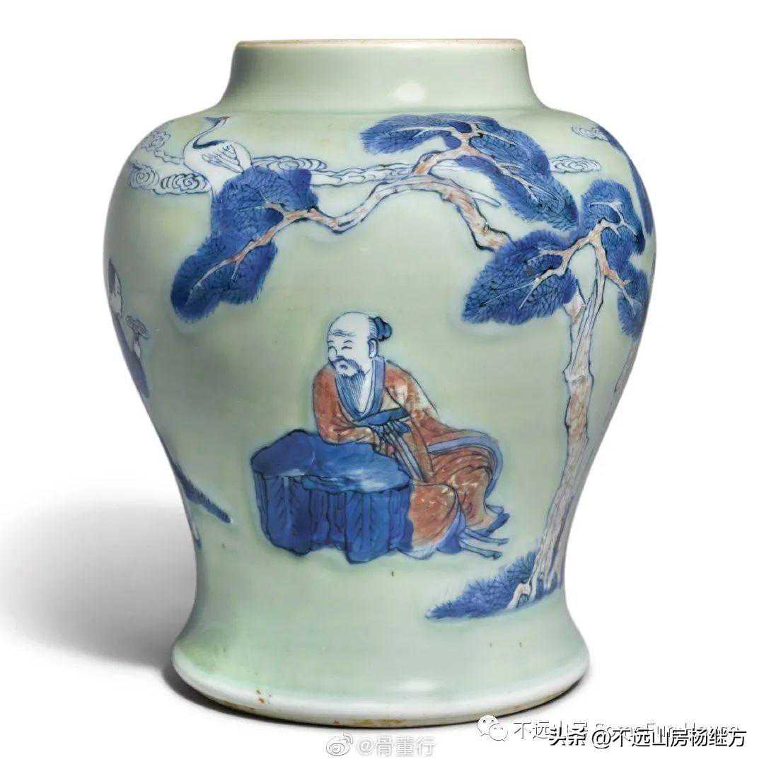 纽约苏富比拍賣2021年3月17日清康熙豆青地青花釉裏紅松下高士圖罐成交价13,860美元