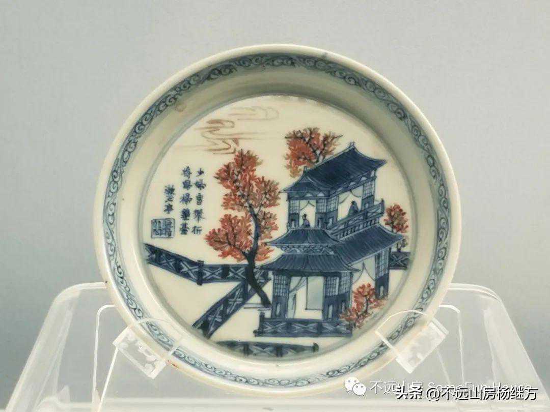 上海博物馆藏康熙中和堂款青花釉里红楼阁纹小碟