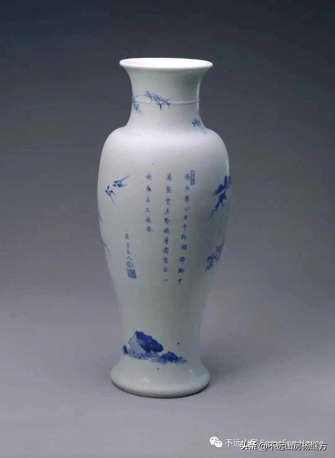 故宫博物院藏清康熙青花松竹梅纹诗句观音尊