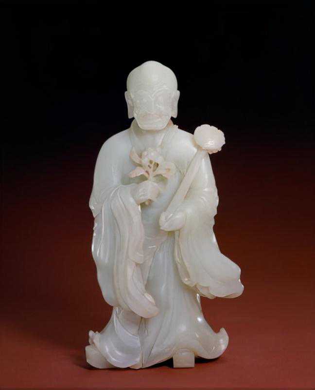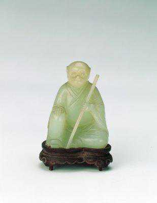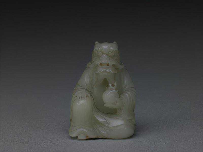 青玉寿星老人,清,高19.3cm,宽6.5cm,厚5.4cm。