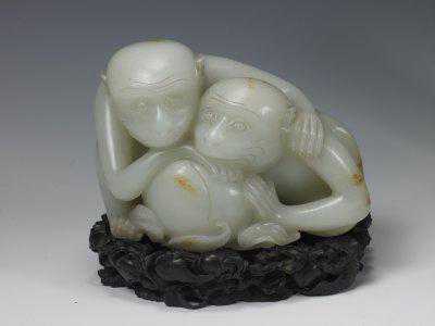青玉双猴,清,长12.9cm,宽11cm,高10.2cm。