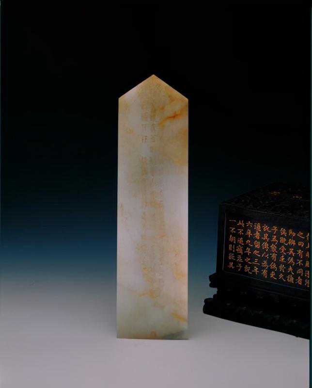 这是曾支持阿睦尔撒纳叛清的小和卓霍集占在支持阿睦尔撒纳叛乱失败后,遣使贡进的第一件痕都斯坦玉器。这也就是清代具有阿拉伯艺术风格的玉器首次进入内廷。平息回部大小和卓木的叛乱,扫清了和阗玉进入中原的障碍,大量新疆玉开始进入宫廷,这为皇家玉器工艺的发展提供了材料基础。乾隆帝喜欢痕玉玉器,在宫内设置有专门的痕玉作坊。
