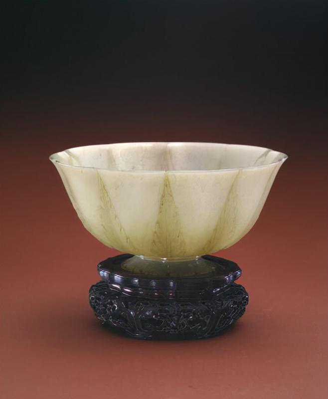 痕都斯坦青玉葵花碗,清乾隆,口径17.5cm,底径6.8cm,高8.2cm。