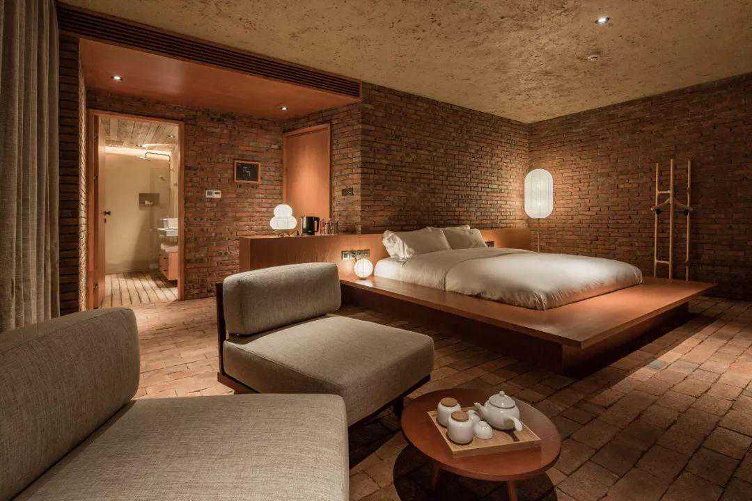 一共做了14间客房。有一区都是独栋或是连排的小别墅,每个房间都带一个非常大的院子,其中一栋别墅还带有一个私密的温泉。房间特意做得很大,还设置了茶台,有足够的空间可以在这里喝茶聊天。