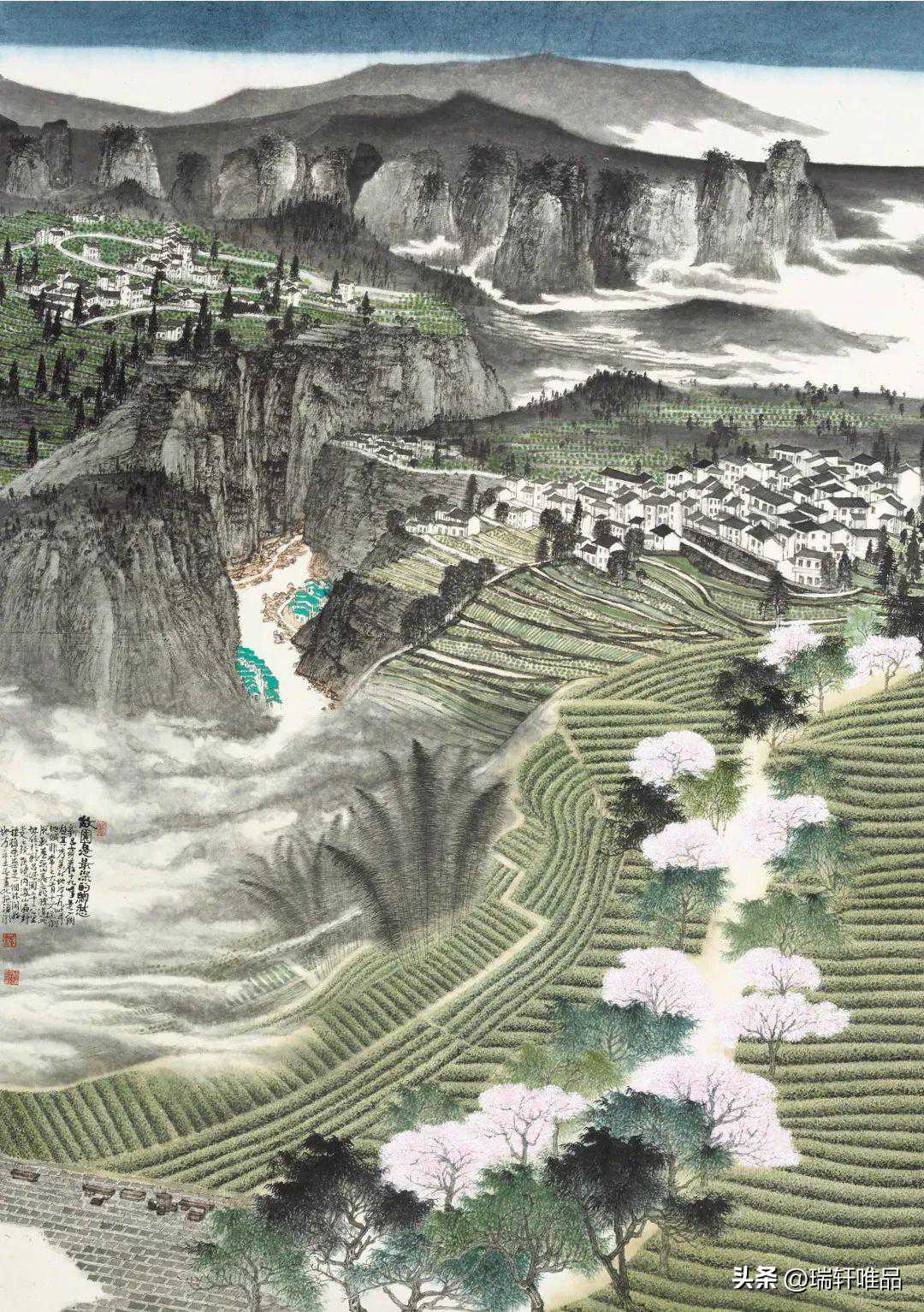 裘观雪山乡春色图180cm×96cm
