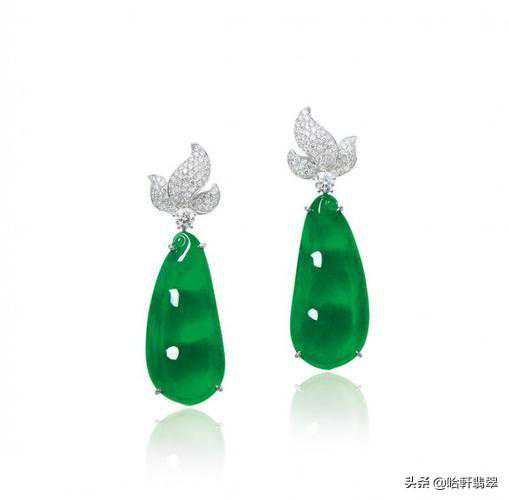 在2017年的保利拍卖会上,展示了一对玲珑剔透的满绿翡翠福豆耳坠,那抹深邃浓郁的绿色让人一见倾心,最终拍得了3,776,000港币的价格。