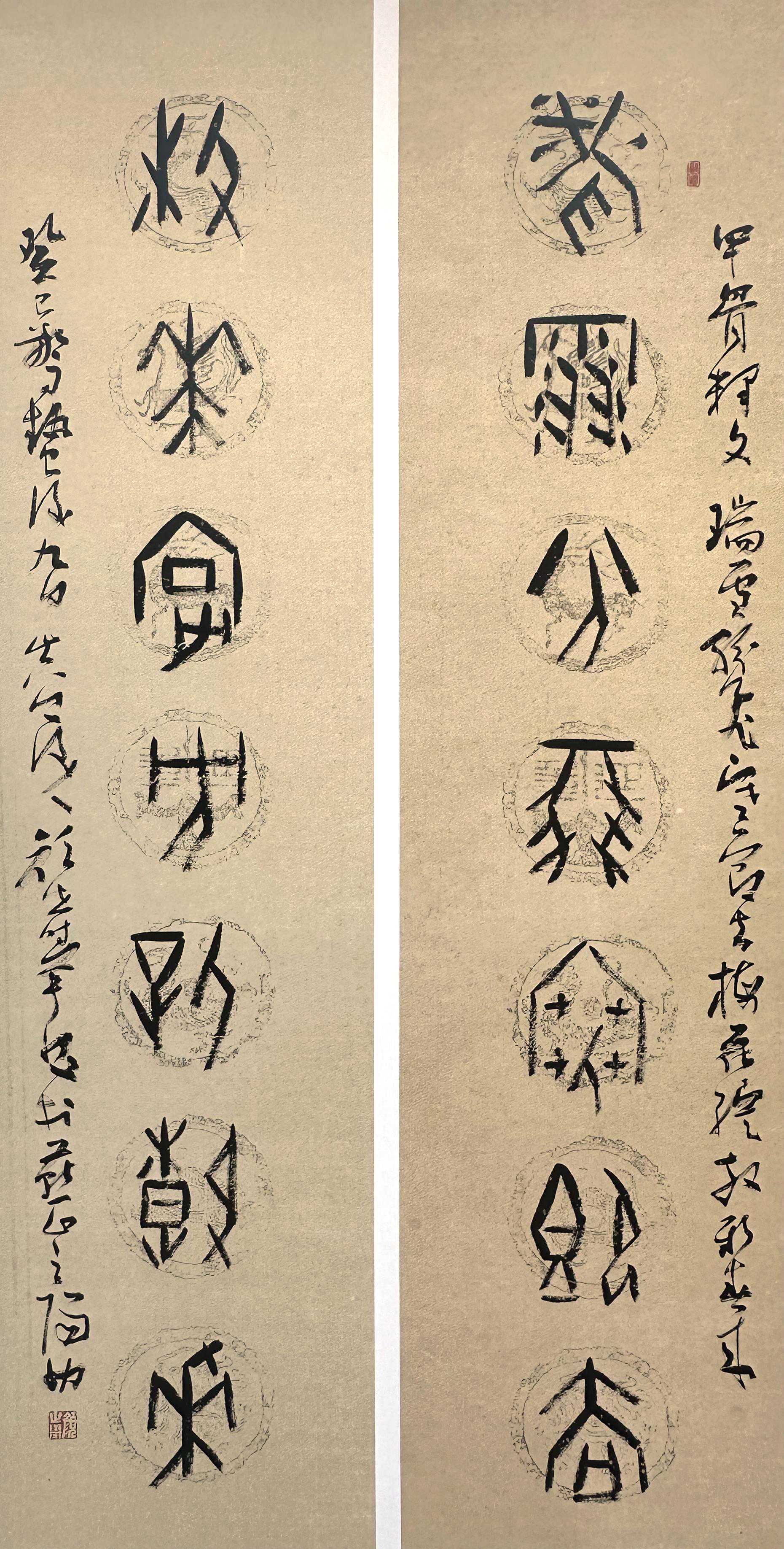 大篆对联《风月对樽酒林泉集众宾》134×34cm×22023年