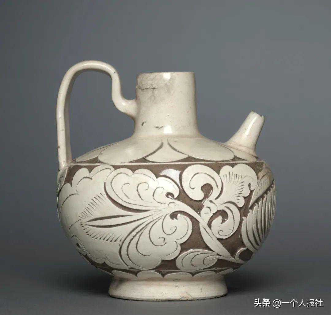 北宋登封窑白釉剔刻花执壶