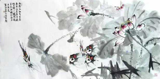 说到这里,我们似乎应该赶快回笔记述我们要说的主人翁——李禾了。之所以把庄子和惠施说得那么多,因为李禾的思维就是一种庄子思维,他是用心在思索这个世界上的诸物。这里当然是鱼。李禾画鱼目前在中国画界有很大的影响,这可能与人们一味地追逐红尘中的具象有关,而对于什么是心灵世界几乎忘却得一丝无存。李禾之鱼跃然于纸上时,只要有一定生活阅历的人都不会把纸上的鱼想象成就是自然界中的鱼,而是画家一种超凡脱俗的境界。你只要看鱼,鱼就会对你发出善良大度及无私的笑容。那笑的背后你不管用世界上什么声音来描述都于事无补。因为鱼的语言只有懂她的人懂,当你与鱼的思维同频的时候,你内心深处所产生的快乐也同样用我们人类自身的语言无法形容。这就是为什么我们批判了几千年的形而上或纯唯心主义哲学总能伴随我们自认为很现实的人的面前的根本原因。