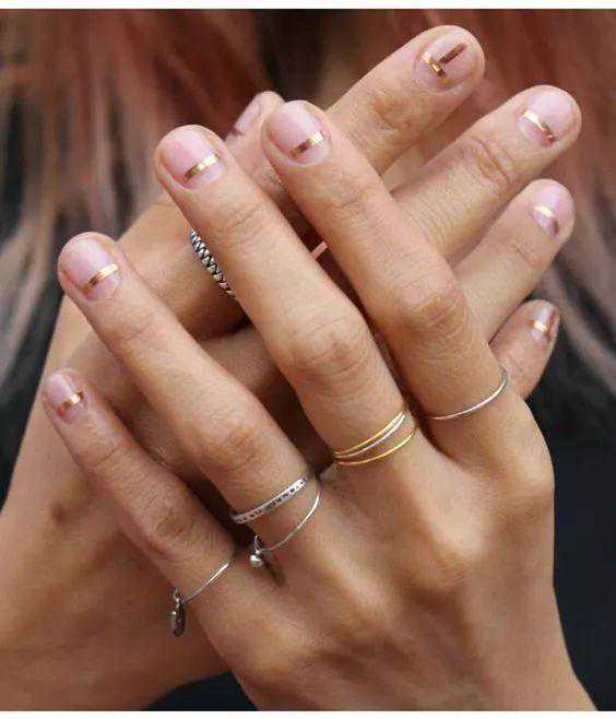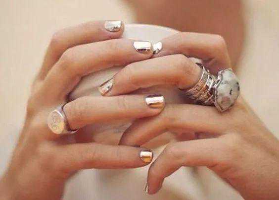 除了金属线条外,用金属元素简单点缀在指尖上,也可以起到增加时髦感的功效。