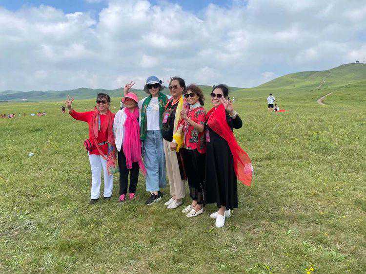 ▼黑龙江省泰康、林甸两县的战友军嫂草原留念。