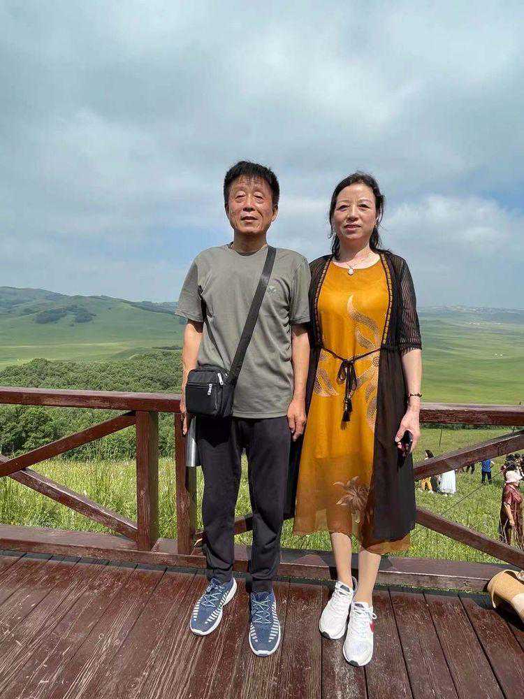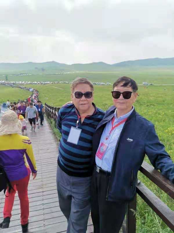 ▼孙占斌夫妇在乌兰布统大草原留念。