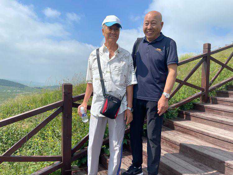 ▼联谊会秘书长李东(右)与副秘书长冉隆周在克什克腾大草原合影。