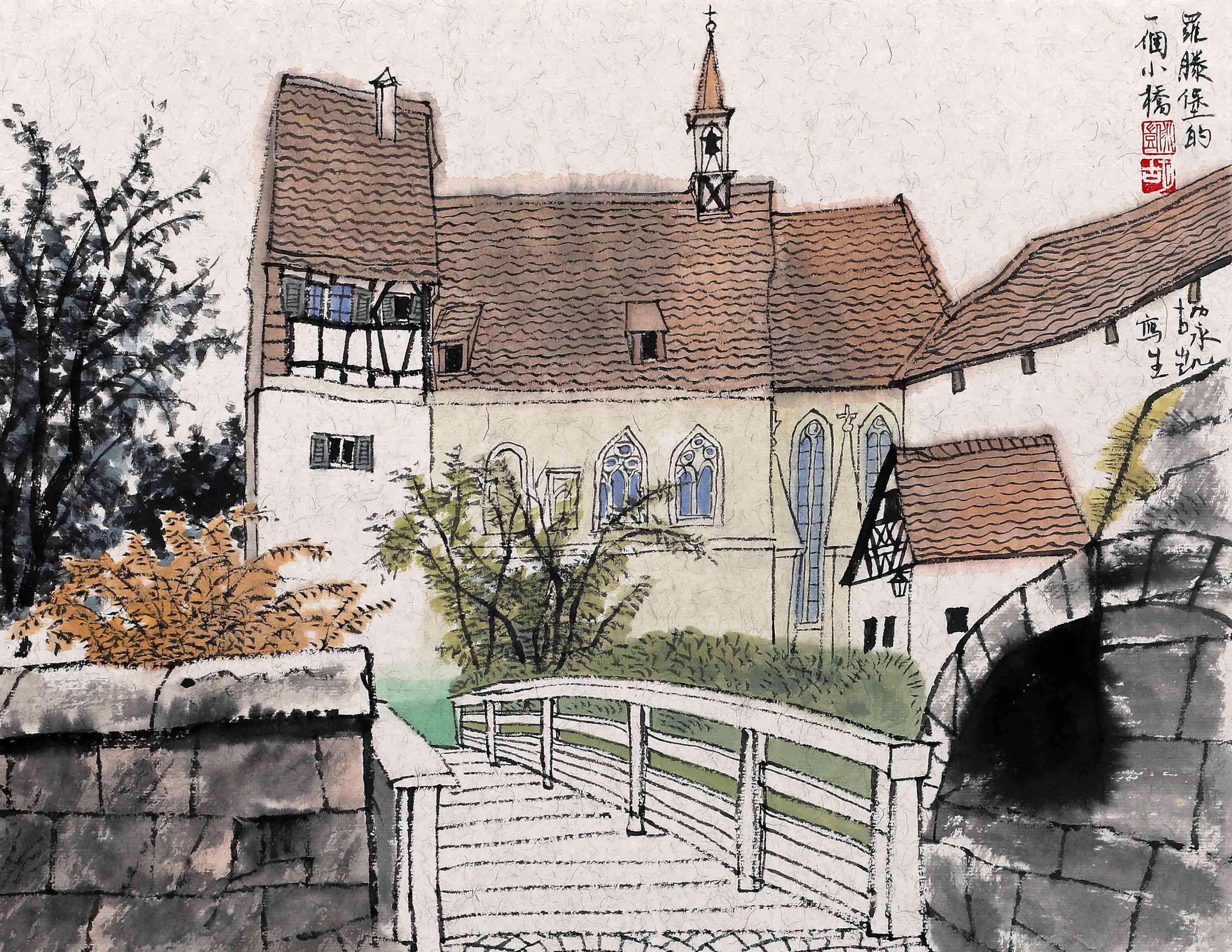 多年来,胡永凯频繁行游世界各地,除了继续他对中西方文化的比较考察之外,他还尝试用中国的笔墨去表现世界的景物。古人早说过,他山之石可以攻玉,1950年代李可染先生的东欧写生,对他笔墨语言的建立起到了决定性的作用。前辈大师的经验值得学习。胡永凯认为异域的景物能给画家全新的感悟,从而对笔墨运用产生新的变革,这是古人不具备的条件,也是新时代给予我们这代画家难得的机遇。
