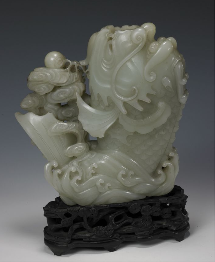清青玉龙首鳌鱼花插(故宫博物院藏)