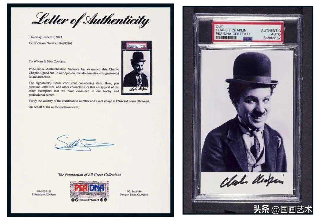 “英国喜剧大师”查理·卓别林(CharlieChaplin)亲笔签名照,附证书