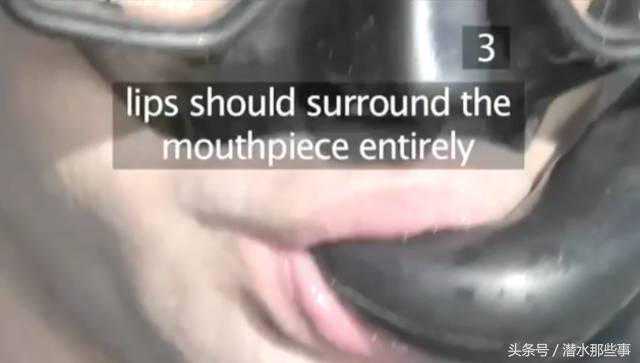 图中示范的西方教练佩戴的面镜鼻子部分相对于亚洲人来说过高,我们要选择适合自己脸型且佩戴舒适的面镜,以确保浮潜时不会经常进水。
